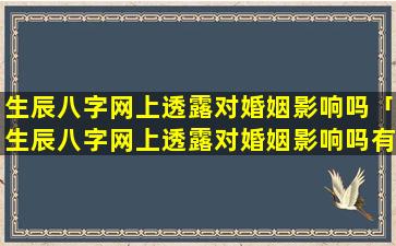 网上透 🦊 露的生 🦢 辰八 🦋 字对婚姻影响有用吗?