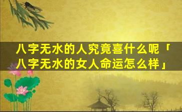 八字无水的人忌火,因为火克水火。主礼主、文,明,过、多的火,会,克。制水性使八字无水的人更加刚烈暴 🐺 躁缺乏包容性做事容易偏激