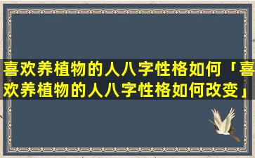 总体而言,喜,欢养植物通常会带来正面的人格特质例如耐心、责 🐝 、任心创造力和减压效果。需,要,注。意的是极少数情况下会出现负面变化因此需要保持适度和平衡