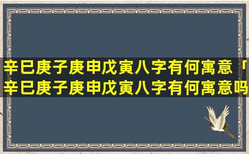 辛巳 庚 子 庚 申 🦢 戊寅八 🌺 字的寓意如 🌸 下:
