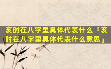亥时,又 🕷 称亥“猪时”,在八字里 🌳 具体代 🦢 表:
