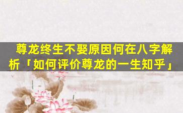 结论从八字来看 🌿 ,尊,龙终生不娶的原因可能是 🐯 多方面的包括 🐛 :