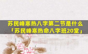 苏民 🌲 峰寒热命八字班 🦁 20 堂 🦊