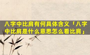 比肩的含义比 🐠 肩在八字 🐡 中具有以下含义:
