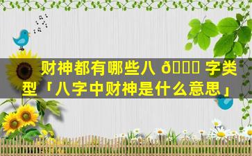 天财神:指八字中出现 🐴 的财星贵人,如天乙贵 🍀 人、三,奇贵人等代表贵人相助带来的财富。