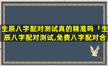 生辰 🦟 八字配对测试的精准度一直存在争议一。些人 🦄 认为它有一定的可信度,能。够,反。映出一些夫妻之间的性格差异和相处模式也有人认为它过于玄虚没有科学依据