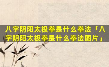 八字阴阳太 🌷 极拳是一种太极拳流派,属于内家 🌻 拳 🐦 。