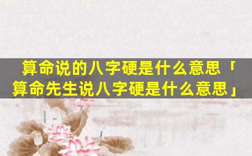 命里八字硬是指一个人的生辰八字中,日柱、时,柱、或命,局中有特定的五行组合导 🦢 致其性格坚强行事果断不易被外力所屈服。
