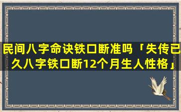 以下几点说明了民间八字 🐬 命诀铁口断准的可能性不大: