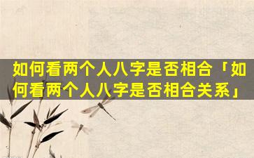如何判断 🦋 两 🦋 个人的 🐕 八字是否相合