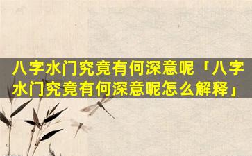 “八字水 🐡 门 🐕 ”的深意 🦅
