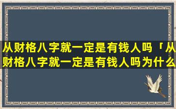 从财格的八字不一定会是有钱 🦁 人,影响财富 🌷 的因素还有很多。