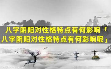 八字中 🐞 的阴阳平衡对 🕸 性格特点 🌵 的影响