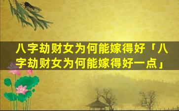 八 🦄 字 🌷 劫 🌷 财女为何能嫁得好