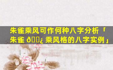 日主丙火生于辰月,得,令,坐戌土得地。年月柱庚子、戊辰,为,金,水,相 🌸 生。水生,木,食,神生。财食伤旺盛时柱乙酉酉金生水水生木形成朱雀乘风格