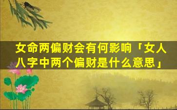 八字中的两 🐈 个偏财只是影响财运的一个方面,还,需要结合八字中其他因素综 🐺 合分析才能判断具体的财运状况。