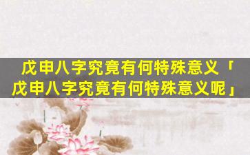 戊申八字的特殊性主要 🌻 体现在以下两点: