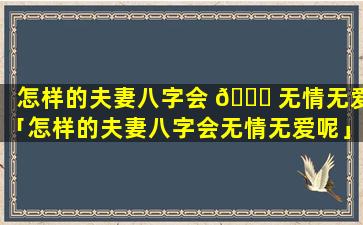 无情无爱 🐺 夫妻 💮 八字特征 🕸 :