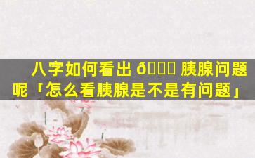 八 🕷 字中并不能直接看出胰腺问题胰腺问题 🌾 。属于医学范畴,需。要通 🐴 过医学检查和诊断来确定
