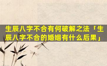 生辰八 🐳 字 🌲 不合 🍁 破解之法