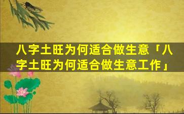 八字土旺是否适 🦍 合做生意赚钱,还,需结合其他因素分析如五行生克制化、四柱格局等 🐘 。单。凭土旺这一要素并不能绝对判断