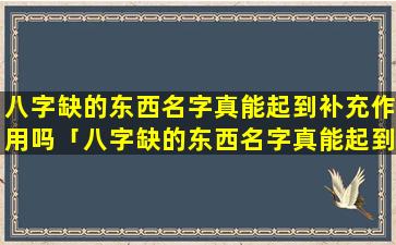 因此,"名"字真能起到补 🌲 充八字缺失作用吗这个问题没有明确的答案。相,信。或,不,相。信取决于个人的判断和价值观理性对待八字和名字补缺注重自身发展和努力才是更重要的