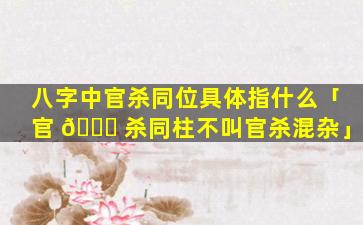 当八字中官星和杀星同柱 🌺 出现且 🐡 都旺盛 🦉 的情况。