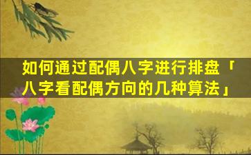 通过配偶八字 🐯 进 🌾 行排 🌲 盘