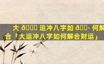 用八字看大 🌸 运流年财运 🐬