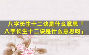 八字长生十二诀是一套基于中国传统八字 🐳 命理学 🐋 中的长生十 🌷 二“运”原理,用于推算一个人一生命运的方法。