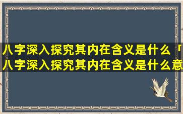 八字深入 🐅 探 🕊 究其内在含义是指: