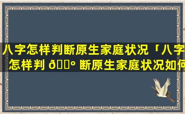 八 🐘 字 🌴 判断原生家庭状 🐯 况好坏