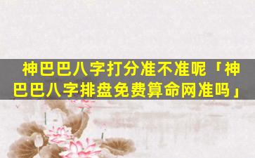 神巴巴 🕷 八字排盘免费算命网的准确性存在争议。