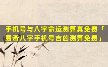 易奇八字手 🦟 机 🌿 号吉凶 🐳 测算免费
