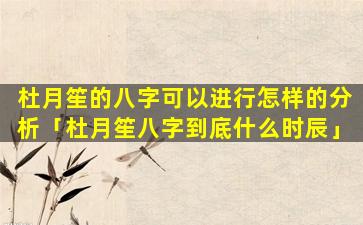 杜月 🦈 笙的八 🐒 字 🌴 :
