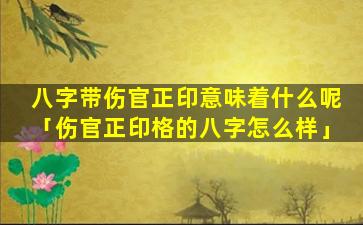 伤 🌷 官正印格是八字命理中的一种格。其特征是以日主为强,身,旺伤官,透。干或旺而有力 🐘 且正印也透干或旺而有力