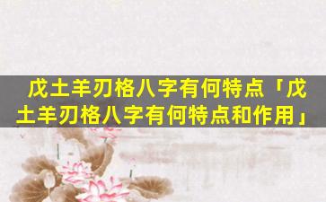 戊土羊 🌷 刃 🐱 格八字的特点 🐒 :
