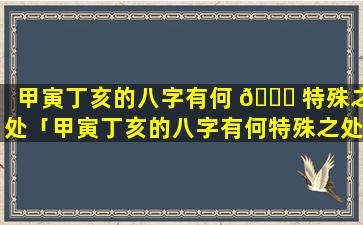 甲寅丁 🍁 亥八字的特殊之处 🐼