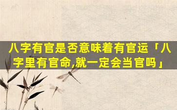 八字命理中,官星代表一个人的事业、职位和权力。如,果八字中,官星。旺,盛并且符合一定的格局则此人可能会有当官的 🐕 运势但能否当官还取决于以下因素: