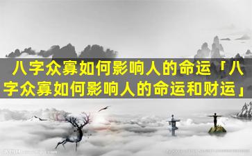 八字众寡如何影 ☘ 响人的命 🐦 运