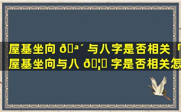 屋基 🐟 坐向与八字相 🐱 关性的判断 🦍 方法