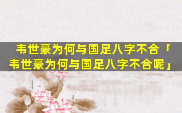 韦世豪与 🦢 国足不 🍀 合的潜 🐞 在因素: