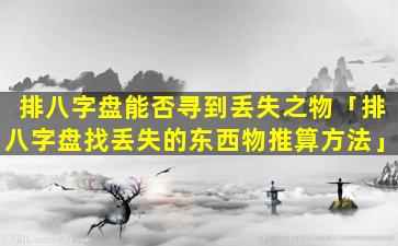 排八字 🐅 盘无法寻找到丢失 🐎 之物 💮 。