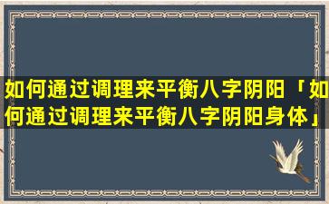 通过 🦍 调理平衡八字阴阳的 🐕 方 💐 法