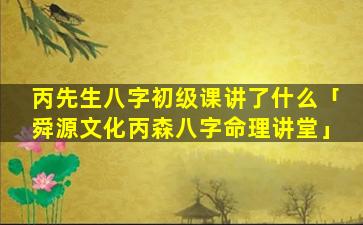 介绍“舜源文化丙森八字命理讲堂”是一个在线学习平台,提供有关八字命理学的 🌳 课程和资源。它是,由。经验丰富的命理师丙森大师创立的旨在帮 🍁 助人们了解和运用八 🕊 字命理来改善他们的生活