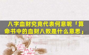 当算命书中出现“血财八败”的字眼时,往,往,预示着命主可能会通过非 🌵 法或不正当途径获得钱财但这种钱财不容易守住容易招致灾祸或破败八。敗,也代表了人個性上的缺陷例如容易、劫、財、衝、動。偏激孤僻等
