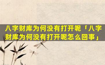 八字 🦟 财库没有打开的原因 🌷 可能有多个: