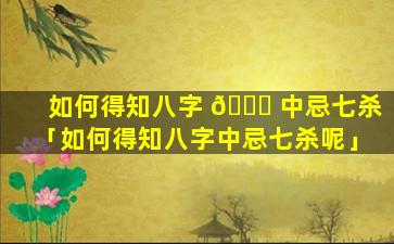 判断 🦁 八 🦄 字忌七 🐕 杀的方法:
