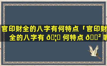 八字 ☘ 中 🦉 官财印俱全的含义 🦄
