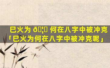 巳 🐠 火 🐎 在八字中被冲克的 🐦 原因如下: